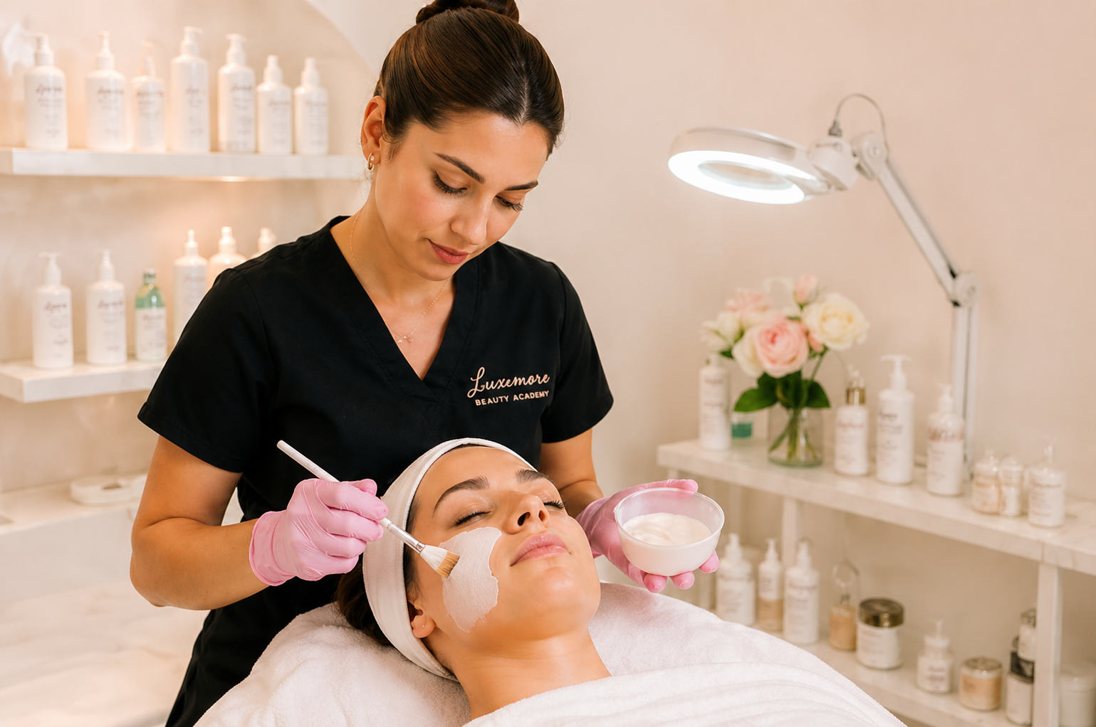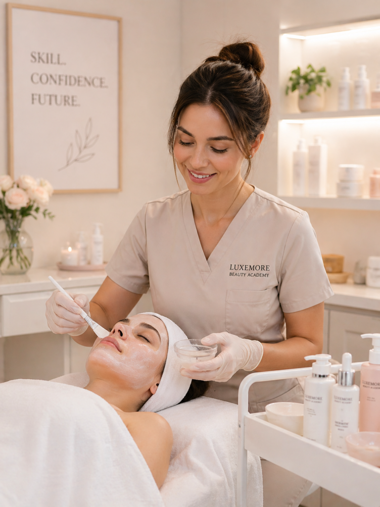 If a career in skin care, esthetics or working in a dermatologist office or med spa sounds like something you want to pursue, then Luxemore Beauty Academy is the right place with our 300 Facial Specialist Hour Program. (16 weeks)