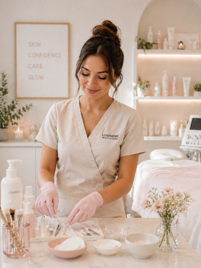 Whether you are just getting started or ready to turn your passion for skincare into a profession, Luxemore Beauty Academy is designed to help you learn, grow, and take the next step.